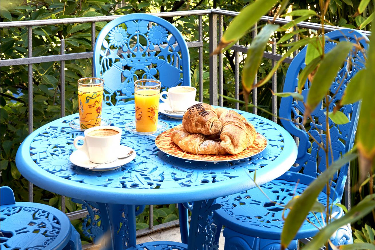 Observers can contemplate the iconic printed Toiletpaper photos decorating the walls, while thinkers can suspend their thoughts on the tranquil balcony overlooking the verdant garden.