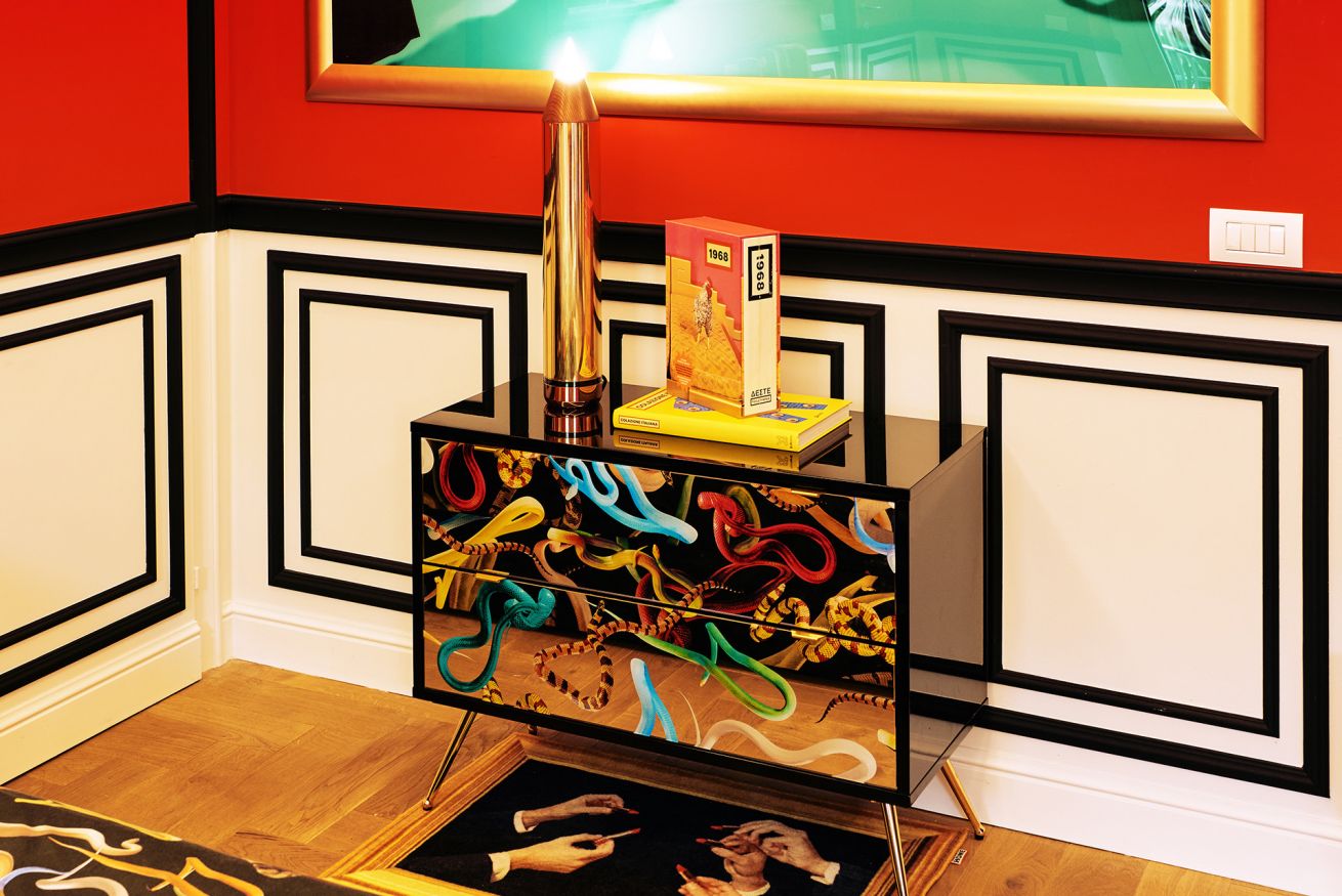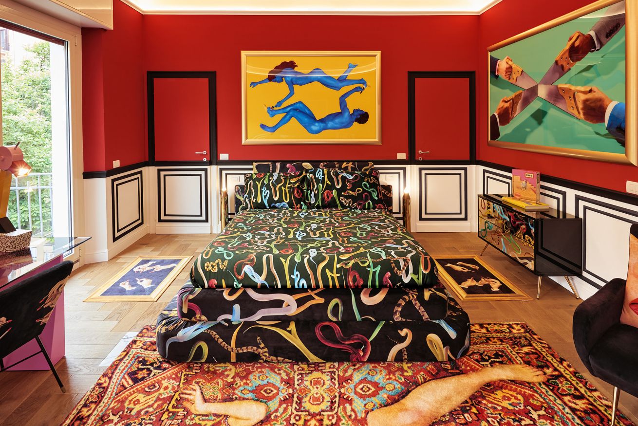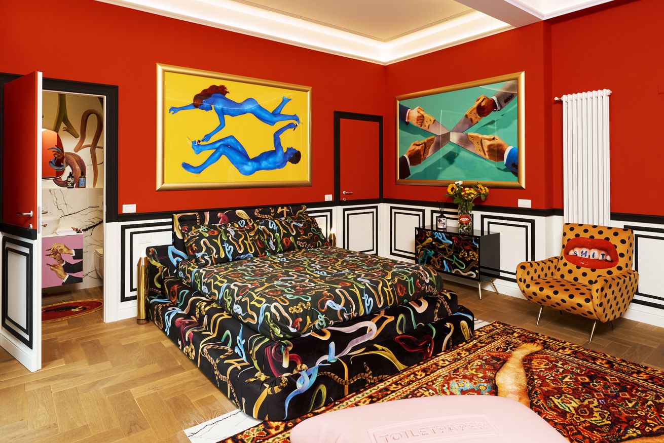 Welcome to the “Red Room" at Toiletpaper Living, the surreal hospitality concept in which the images signed by world famous artist Maurizio Cattelan and photographer Pierpaolo Ferrari entirely permeate the spaces.