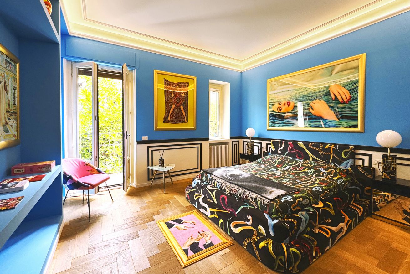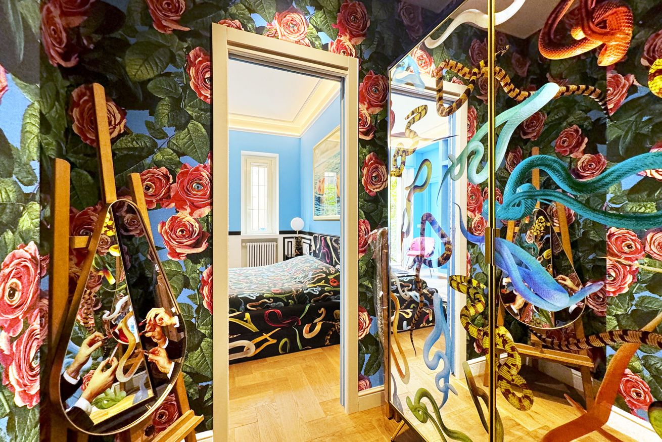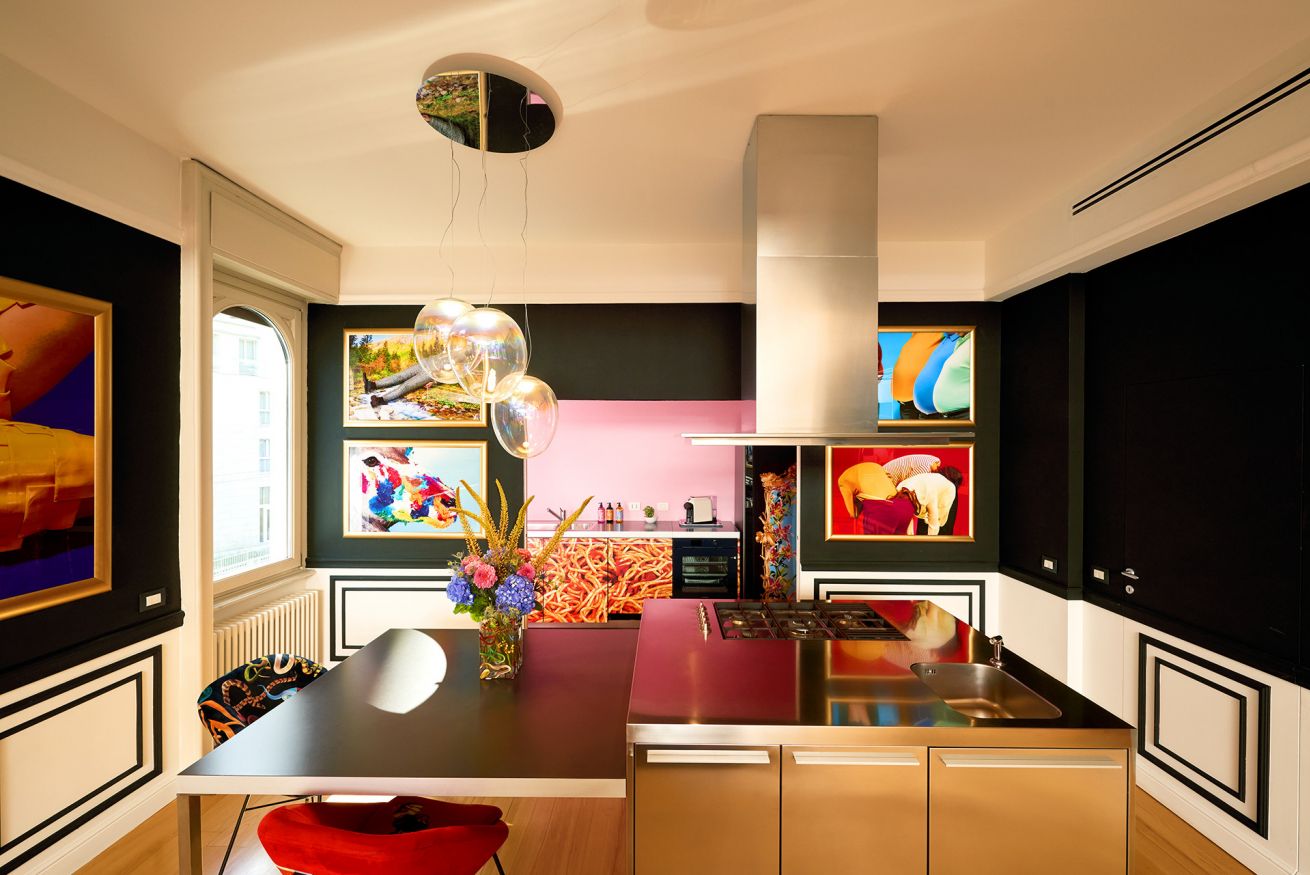 Welcome to the “Supernova” apartment at TOILETPAPER Living, the surreal hospitality concept in which the images signed by world famous artist Maurizio Cattelan and photographer Pierpaolo Ferrari entirely permeate the spaces. Toiletpaper Living is situated in the most beautiful building in Milan, the pink “Lilies” building, one of the 5 Milanese palazzi on Via Balzaretti painted with an iconic Toiletpaper image. Via Balzaretti has become so beloved by art and beauty lovers from Milan and the rest of the world, that the street is now fondly referred to as “Toiletpaper Street”.