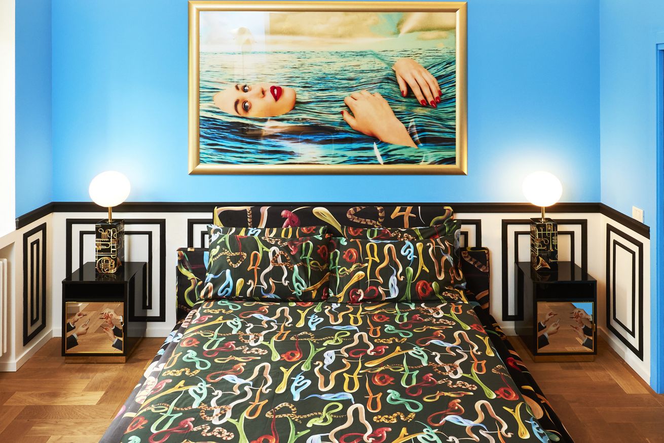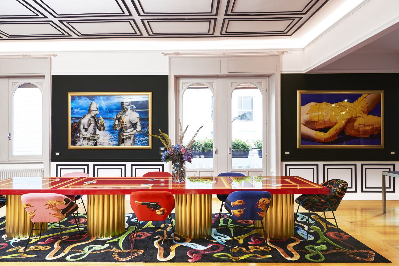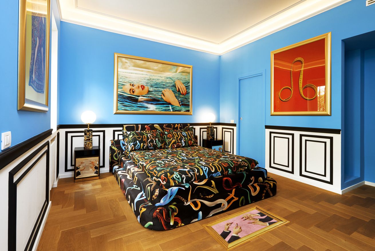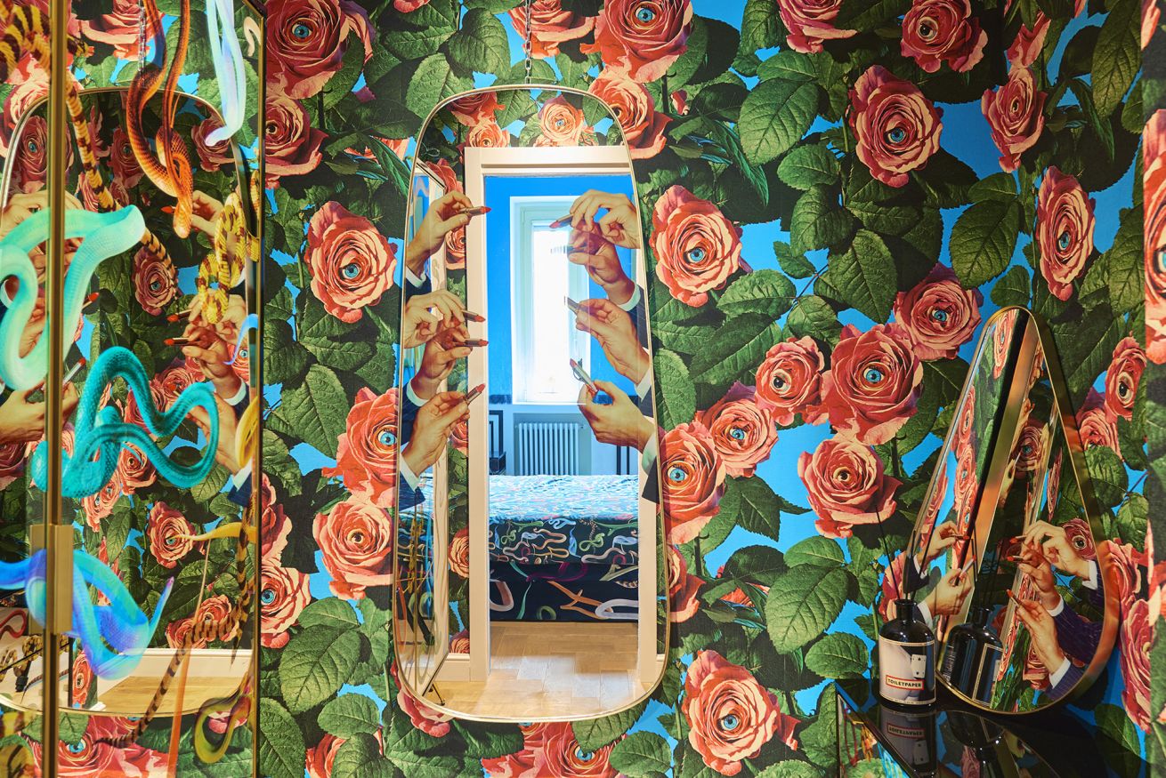 Welcome to the “Supernova” apartment at TOILETPAPER Living, the surreal hospitality concept in which the images signed by world famous artist Maurizio Cattelan and photographer Pierpaolo Ferrari entirely permeate the spaces. Toiletpaper Living is situated in the most beautiful building in Milan, the pink “Lilies” building, one of the 5 Milanese palazzi on Via Balzaretti painted with an iconic Toiletpaper image. Via Balzaretti has become so beloved by art and beauty lovers from Milan and the rest of the world, that the street is now fondly referred to as “Toiletpaper Street”.